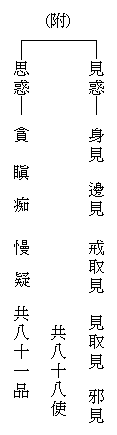 什么是见思惑?讲表末后有附注。‘见惑’:见是见解,惑是迷惑;错误的见解,错误的看法。‘思惑’:思是思想,错误的思想、错误的想法。