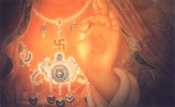 当我们肢体疼痛的时候,假如碰触到硬的东西,更感觉到疼痛无比,而佛经上描述佛陀的手‘平坦、充满、光滑’就像兜罗棉(最柔软的一种棉)。末学常想,这样柔软平坦的手,是来自如何柔软平等的心?这样的手,即使碰触到伤口,伤口也不会疼痛,也能够得到抚慰了。也许同在病苦中的朋友,都会有一种无奈,因为从小无论在家里、在学校,即使读很多书,都没有人教过我们:很痛的时候,不用止痛剂要如何安然度过?咬紧牙根的强忍实在是心上一把刀,末学也一样,曾有人问末学:‘你都不会痛吗?’末学又不是没有神经,岂有不痛之理,只是庆幸有‘佛经’可以胜过‘神经’,深信佛力必能胜过业力!发病后也曾痛到全身僵冷颤抖,穷平生忍力尚不知如何让自己能解脱片刻,末学立志不用止痛剂,而以加大信愿念佛的心波,强过痛觉的神经波。有一天因画佛手在量度经解读到对佛手的描述:‘不露骨节,而柔和如意,屈伸悠然,犹如象鼻之弯转焉’,这句话对末学在痛中念佛有很大的启示,又在无量寿经会集本上发现经中出现了好多次的‘身心柔软’,‘身意柔软’比如:描述阿弥陀佛光时,说到‘其有众生遇斯光者,垢灭善生,身意柔软’;介绍极乐国的菩萨修持时,别说‘调伏诸根,身心柔软’;形容极乐国民饮食受用自然,而食后‘身心柔软,无所味著。’这些经文里让末学反省到一向自己身心太僵硬了,常不自觉地有部分肌肉紧张,不柔软,大家假如回首观察自己在痛苦中的姿势,一定会发现至少有部分身体强硬卷缩或握拳挣扎,即使是口中念佛,心也会偷偷溜去抱住那痛苦的地方,越执著越痛,可是‘身见’没有破除的凡夫实在难以突破此点,末学也是病痛临头才开始练习,似乎太迟,可是佛经威力一定会强过痛神经的嚣张,不信您在痛苦中可以试试,如经言—让手足各关节都保持柔软如象鼻之弯转,在身心柔软中清楚念佛,就犹如浮在水上,飘浮划水前进,水有浮力,相信浮力,放松了就能上浮,就能游泳;假如害怕挣扎,信不过浮力,那么同是这个体重,也会下沉;念佛人体验佛力,就如游泳者体验水的浮力一样。末学承受大众深思,实在没有什么可以呈奉供养,只有说说自己病中屡屡失败的一些经验,也许有人在漫漫长夜独自流泪时会用得到吧?初病倒时,因为觉得不大声念佛实在心里听不明白,体力越差注意力越难集中,站著摇摇幌幌,走路跌跌撞撞,躺著昏昏沉沈,只有打坐比较可以支持,因为对末学病况而言,比起拜佛或走动,打坐还算是较容易的姿势,最初也只好流泪忍过腿骨的疼痛,猛力一直出声,念到嘴唇都肿起来再念到肿消下去,开始一小时顶多能念六千声佛号,每天尽量打坐十小时,持念六万声佛号,也难以做到雪公老师所教的‘百八心不乱’,说实在病痛里念佛的心情,都太急迫,静夜里听自己白天念佛的录音带,发现是一种身心逼迫的气氛,不能做到‘南无’。亦即‘皈命,把命交出去’的轻松自在,能皈命一分方能感到一分佛力,能全然皈命才能体会十分佛力,我们的‘交出去’好像都会在不自觉中又偷偷要回来,‘南无’虽然好唱,但是不易真正实行。有一天末学凝望佛颜念佛,突然感受到一启示,也忽然发现含藏在名号中的慈悲—无论是那一国人痛苦时几乎部喊出‘阿’的声音,佛的悲悯让我们在称名时就尽情畅吐痛苦烦恼积郁,假如能柔软松开口腔,尽心舒畅念‘阿’,痛苦就随音声倾泄化空了。其实阿弥陀三个字各别都有无尽的奥义,梵语‘阿’字,翻译成‘无’,含‘本不生’的意义,故是空谛,阿字观说:‘自阿字出一切陀罗尼,自一切陀罗尼生一切佛’,一个阿字功德便巍巍如是,喜欢研究的学长也可以去读经逐字探讨。但真正念时,是不思议的,只须清畅地一个字一个字念清楚,除了当前这一个字,什么都是多余的!身心苦恼都在‘阿’字里解放吐空,病中念久真的不禁会感谢佛名大恩!量度经解描述‘佛口’说:‘口之两角,竟半麦之分,其梢向上翘起,如花瓣之尖,美妙含笑之容。’由佛的微笑中,发现佛名号里的‘弥’字,轻轻全抿双唇念出,就似绽放安详微笑之容。正如慈悲之意是拔苦予乐,称念佛名‘阿弥’二字就足有拔苦又予乐之功,真是不可思议的‘解脱光’!念一声就和佛会心一笑,常念就常和佛会心微笑,真是念越多越欢喜,真是不可思议的‘欢喜光’!难怪古德说念佛之乐唯念佛人可知。放松身心、放松舌头轻念‘陀’,不管是梵音,国、台语,舌轻触上颚,清晰念听,就鼓舞阵阵精进向上的气机,有如自家充电一般。佛是圆满的觉悟者,一念到佛,也让我们转面向光明,同照本有的佛性,末学是念佛幼稚班说不出弘深的道理,只是想到许多辗转病榻众苦逼迫的同伴,不由得忘记自己的浅陋,唠叨说一些垂手可得的念佛之乐,阿弥陀佛有愿,在其名号中‘为众开法藏,广施功德宝’,所以信佛慈的人只要老实念,念念都能得到功德宝!真的末学至今尚不曾靠用止痛剂,都是靠放松身心令柔软,凝视佛像或闭目忆佛慈颜,感恩地恭念万德洪名,尽心念到最清畅,您能发多清晰的音就尽十分力发到多清晰,同时回收‘音光’,逐字听明;即使不出声,也要聆听静默里清畅开怀的佛声,犹如经中所言:‘畅发和雅音,歌叹最胜尊’。我们虽然不能共聚念佛,但可以一起乘著佛声的翅膀,飞越过十万亿烦恼痛苦,到极乐世界的琉璃枝梢,与那迦陵频伽合唱一曲南无阿弥陀佛,共享无量光寿的甘美和开阔庄严!经上描述极乐国的乐