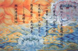 由于释迦牟尼佛慈悲示现,亲手为目盲的弟子穿针,亲手为生病弟子换药照料,灯灯相传,至今念佛人还是不断地随学著,用一片古朴的诚恳—超形色的颜料画下背后的彩。当末学体力、心力不继的时候,大家的念佛声,大家的虔诚,就一次又一次地鼓舞起末学的勇气,她们希望末学,还有天下一切的受苦者,当下就能够活在阿弥陀佛无量的光明中。