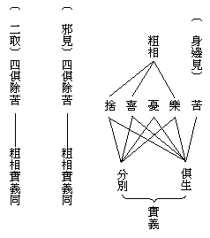 此上所说,是约实义摄苦,若诸圣教,随其有支中某一苦相增盛,则所说不足。如《缘起初胜法门经》则说,生显行苦,老显坏苦,死显苦苦。《十地经》第八则说无明、行、识、名色、六处名为行苦,触、受名为苦苦,爱、取、有、生、老死名为坏苦。《缘起经》但约果时相显以辨三苦。《十地经》通约果因以辨,故不相违。