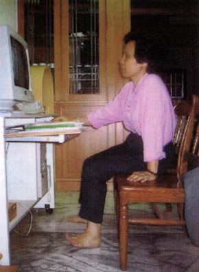 右手工作, 左手虽没事,也整只僵持用力,肩膀也耸起,(白费力气),左腕也压折(冤枉阻折血管),左脚没事也翘著紧张(真委屈),下巴也抬起(脖子疲劳)。 |