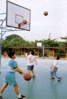 *或俯首作两手指交叉,置于后脑部之动作。手可放松,不必用力,以自然重量加压,拉开颈椎各间隙。