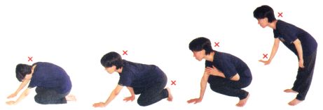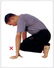 ●有些人是头太往下栽,向前伸手按地。(如图)