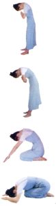 ·拜佛动作,跪坐压开踝关节,又加灵活翻足起身,对淋巴反射点,有一压一放之按摩效果,促进循环。对增加免疫力,有极大帮助。