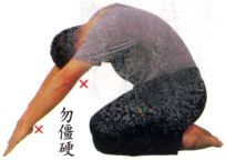 ★注意:肩、手勿僵硬紧张,手放柔软些,(力在丹田)。 |