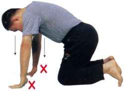 翻脚支点是‘膝’,若双手不收到膝旁(离膝太远),则整个上身重心也必离膝较远,则重心不稳。甚至尚须以手用力按地,作另一支点,则肩、手也载力沉重,膝、腿也载力僵硬,翻脚就难以灵活自如,起身也站不稳。