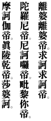 南无.喝啰怛那.哆啰夜耶.南无.阿唎耶.婆卢羯帝.烁钵啰耶.菩提萨埵婆耶.摩诃萨埵婆耶.摩诃迦卢尼迦耶.唵.萨皤啰罚曳.数怛那怛写.南无悉吉栗埵.伊蒙阿唎耶.婆卢吉帝.室佛啰愣驮婆.南无.那啰谨墀.醯利摩诃皤哆沙咩.萨婆阿他.豆输朋.阿逝孕.萨婆萨哆.那摩婆萨哆.那摩婆伽.摩罚特豆.怛侄他.唵.阿婆卢醯.卢迦帝.迦罗帝.夷醯唎.摩诃菩提萨埵.萨婆萨婆.摩啰摩啰.摩醯摩醯.唎驮孕.俱卢俱卢.羯蒙.度卢度卢.罚阇耶帝.摩诃罚阇耶帝.陀啰陀啰.地唎尼.室佛啰耶.遮啰遮啰.摩么.罚摩啰.穆帝隶.伊醯伊醯.室那室那.阿啰参.佛啰舍利.罚沙罚参.佛啰舍耶.呼嚧呼嚧摩啰.呼嚧呼嚧醯利.娑啰娑啰.悉唎悉唎.苏嚧苏嚧.菩提夜.菩提夜.菩驮夜.菩驮夜.弥帝唎夜.那啰谨墀.地利瑟尼那.波夜摩那.娑婆诃.悉陀夜.娑婆诃.摩诃悉陀夜.娑婆诃.悉陀喻艺.室皤啰耶.娑婆诃.那啰谨墀.娑婆诃.摩啰那啰.娑婆诃.悉啰僧.阿穆佉耶.娑婆诃.娑婆摩诃.阿悉陀夜.娑婆诃.者吉啰.阿悉陀夜.娑婆诃.波陀摩.羯悉陀夜.娑婆诃.那啰谨墀.皤伽啰耶.娑婆诃.摩婆利.胜羯啰夜.娑婆诃.南无喝啰怛那.哆啰夜耶.南无阿唎耶.婆嚧吉帝.烁皤啰夜.娑婆诃.唵.悉殿都.漫多啰.跋陀耶.娑婆诃。