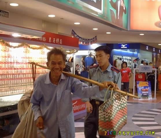 一位农村的以卖菜为生的老人走进了某商场这个服务员以鄙夷的眼光打量着他,十分看不起老人保安走了过来上前驱赶 ,老人笑得很尴尬保安喝斥这位老人,让他滚出去,他仍然这样笑着,谁知道老人心里的感觉又会是怎样的难受!老人无辜的走出商场,今天是他孙女生日,他只是想给孙女买个发夹,难道这也有错吗??