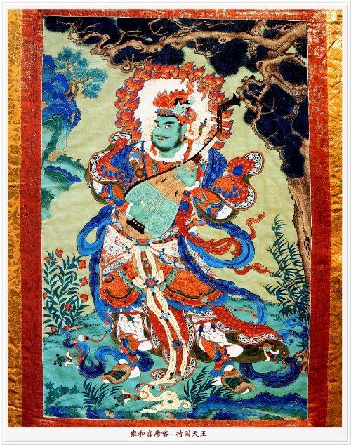 四大天王手上都拿著道具,这些道具也是表法。东方天王手上拿的是琵琶乐器,代表凡是做事情不可以操之过急。就像弹琴一样,琴的弦松了,弹不了,紧了,就断了。这是告诉我们做事情要合乎中道,不能超之过急。我们负责尽职,要做到恰到好处,不要做太过头了,也不能做不及,这样就非常圆满。